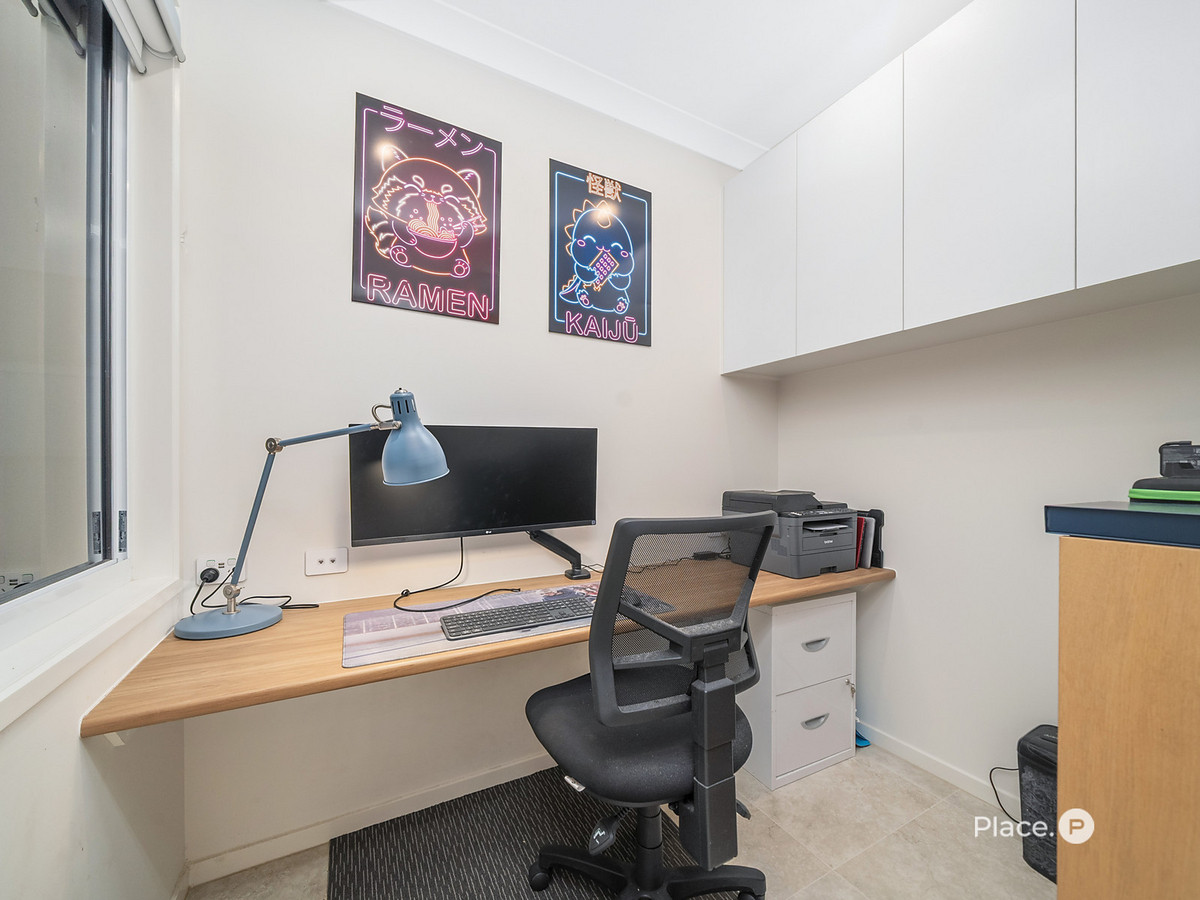 – Dedicated home office with built-in desk and integrated storage