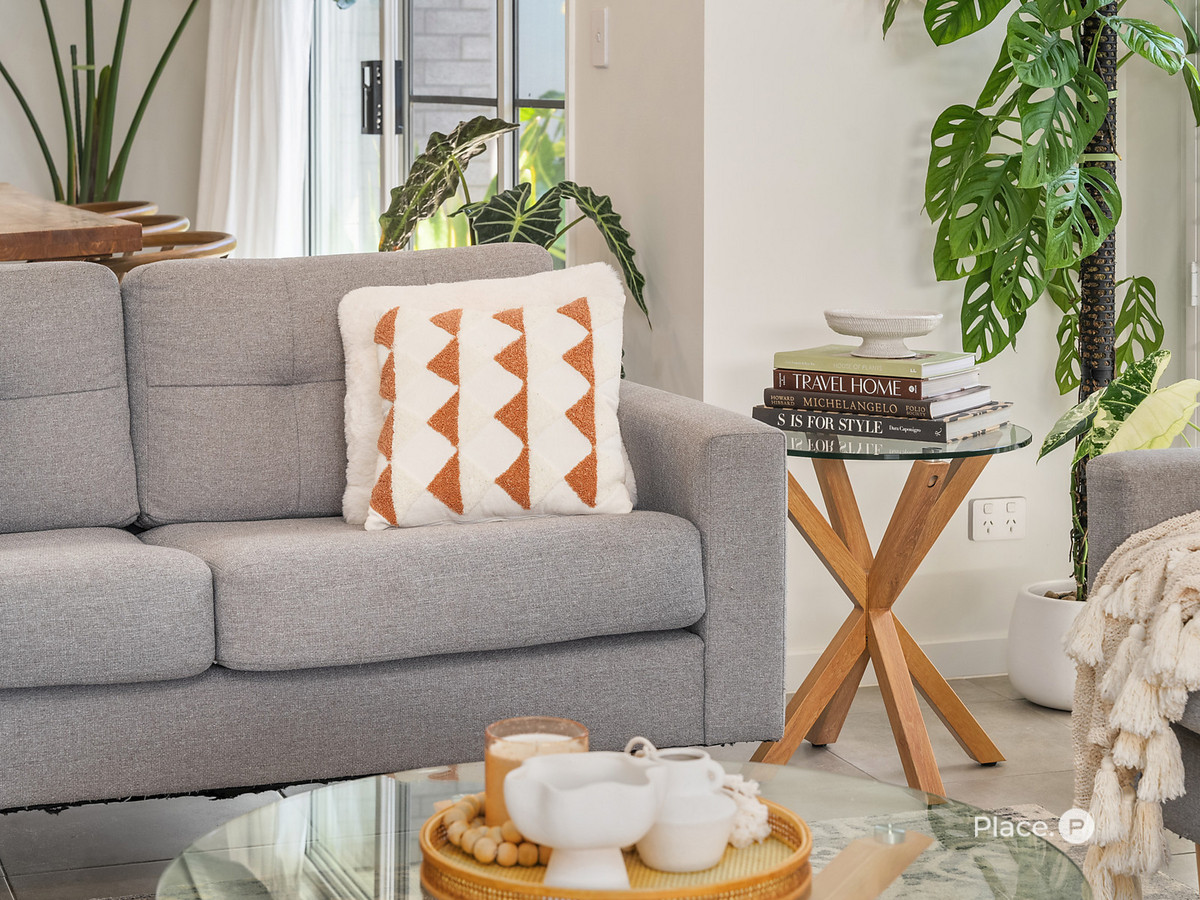 Inside, the open plan living and dining zones create a seamless connection between the kitchen, lounge and outdoor spaces, filling the home with natural light and a sense of ease.
