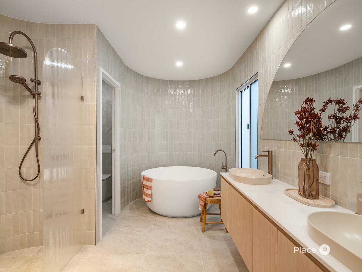 – Master suite: curved walls, free-standing bath, dual basins, walk-in dual shower, separate toilet, generous walk-in robe & private north-facing balcony with mountain & sunset views