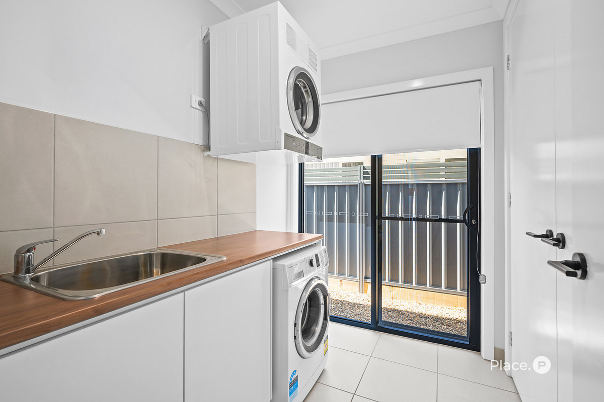 Flowing effortlessly from the dining and living areas, the kitchen extends out to a fully enclosed alfresco with pull-down lockable shutters – the ideal all-weather entertaining space. Outdoors, the private and secure backyard is surrounded by low-maintenance landscaped gardens, offering an easy-care lifestyle for busy families or those who love to lock up and leave.
