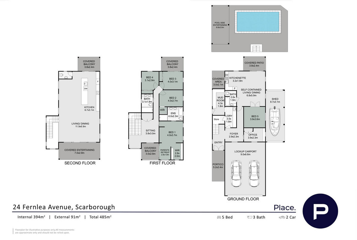 – Integrated Granny Flat – perfect for multi-generational living, guests, teenagers or even Air BnB. It features a Bedroom, Bathroom and Kitchenette. It opens out to a patio and overlooks the Pool and Outdoor Entertaining area.