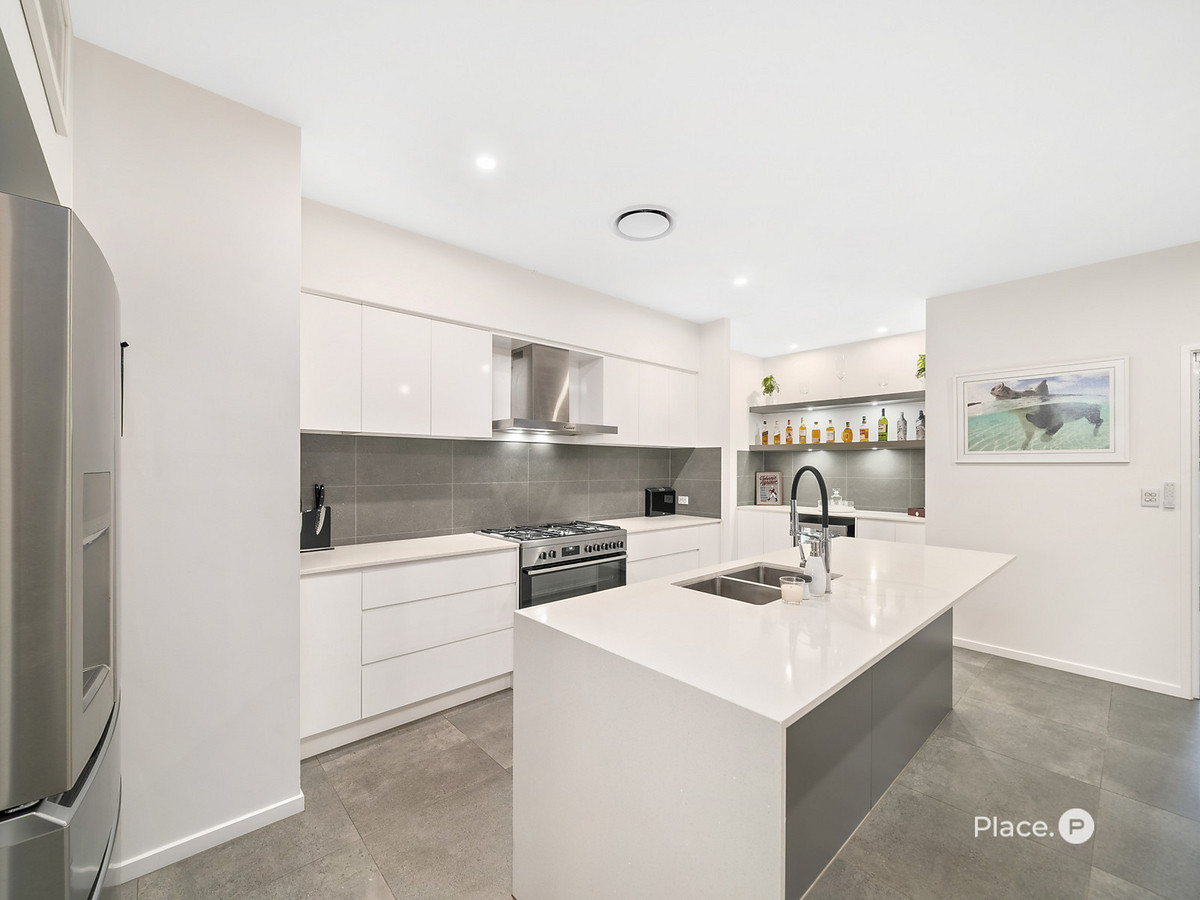 At the heart of the home, the chef’s kitchen is an entertainer’s dream complete with a 5-burner gas cooktop, 900mm oven, expansive butler’s pantry with servery window, and a built-in bar with wine fridge for added indulgence. Open plan living flows seamlessly to the tiled outdoor entertaining area, overlooking a low-maintenance backyard with putting green, astro turf, and ample room for a pool. For quieter moments, enjoy a dedicated media room, study nook, and private bedroom zones ideal for family harmony.