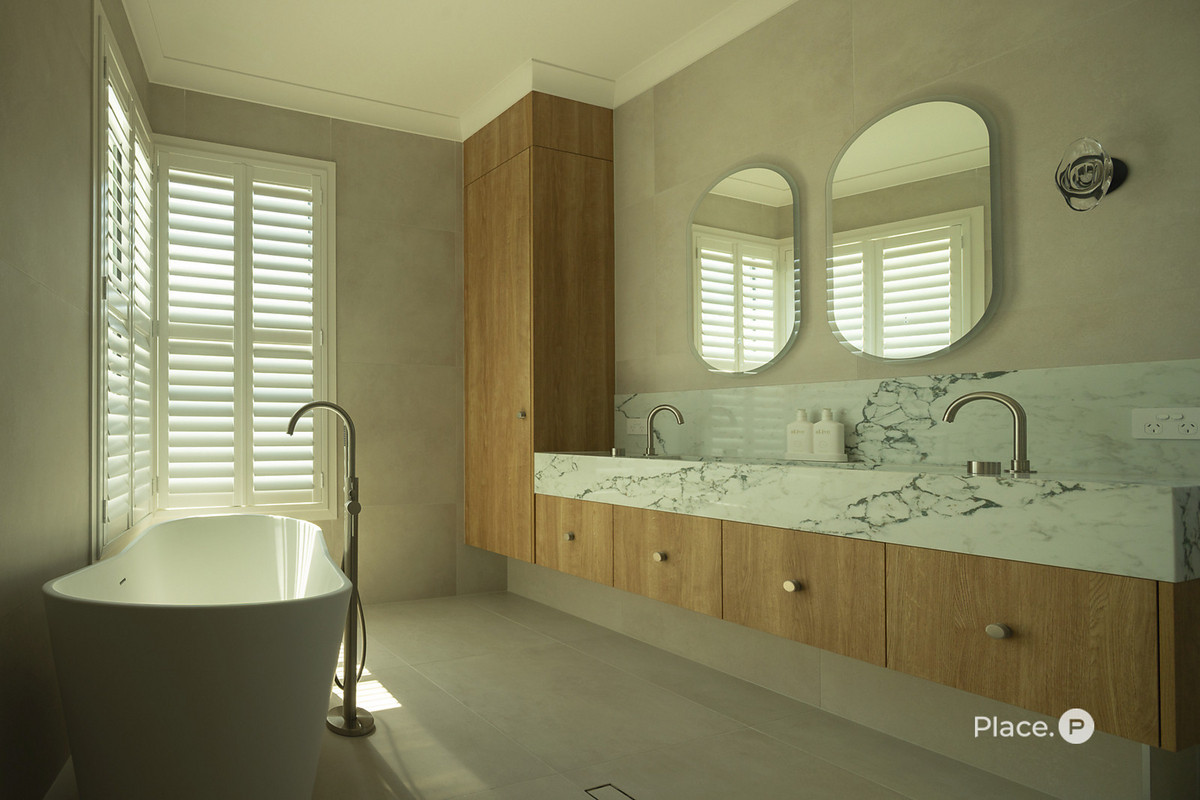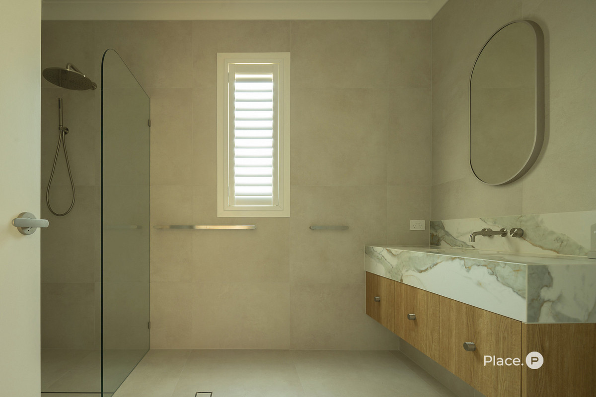 – Palatial master suite with panoramic water views, walk-in robe and indulgent ensuite showcasing dual basins, freestanding tub and Quantum Quartz benchtops