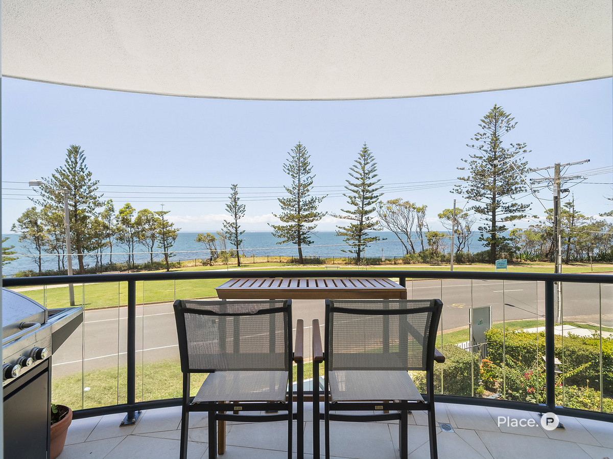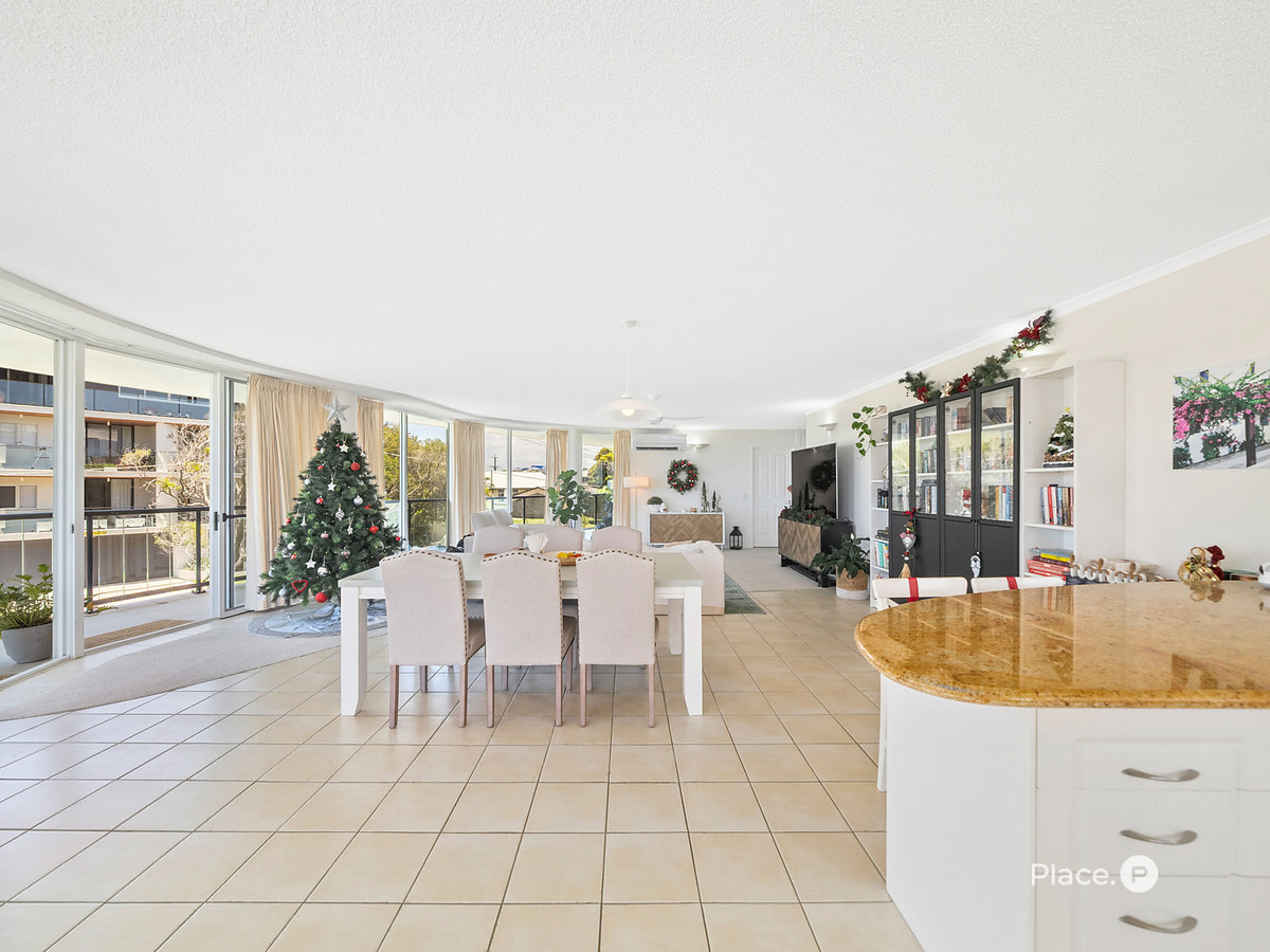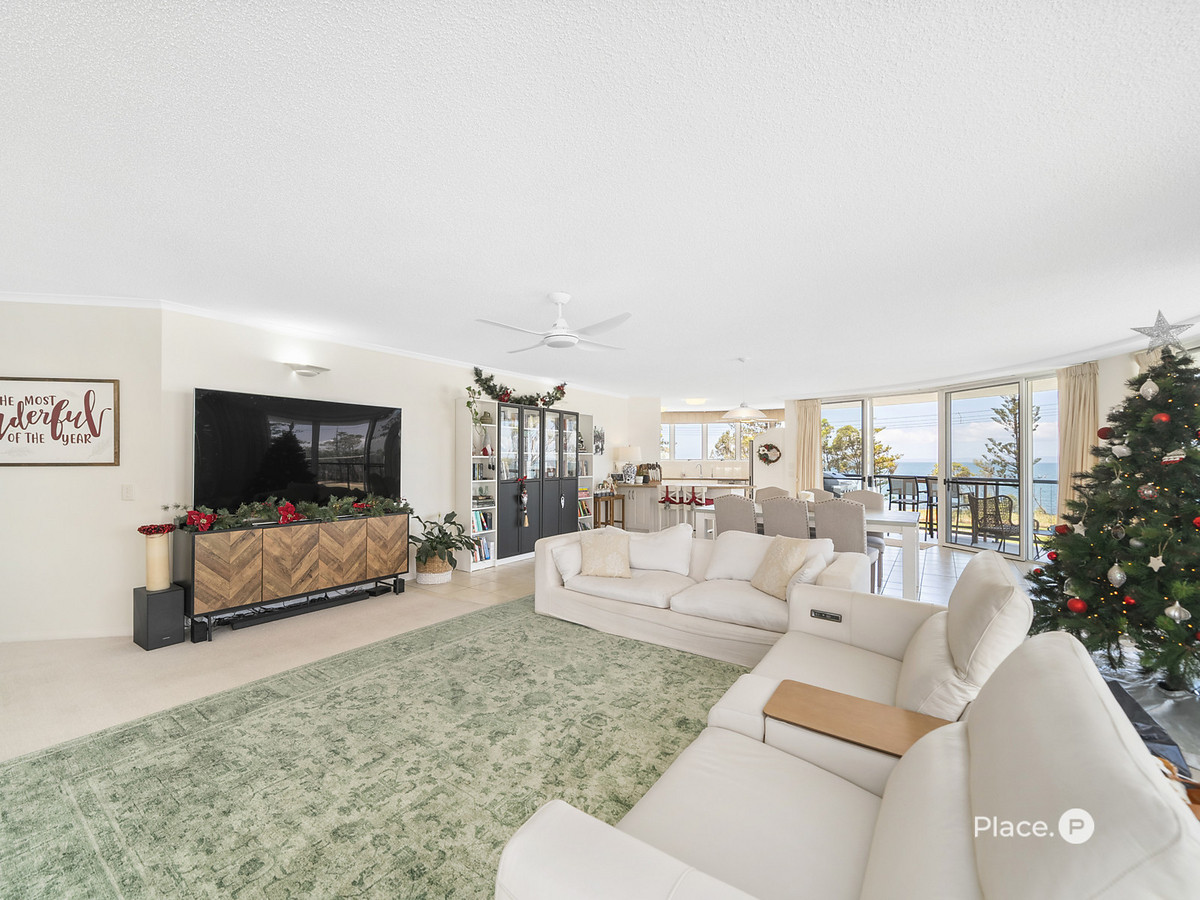 With only 14 apartments in the building, this residence offers a rare sense of privacy, space, and quiet coastal living—made even more appealing by its elevated middle-floor position and breathtaking, uninterrupted views across Moreton Bay and Moreton Island.