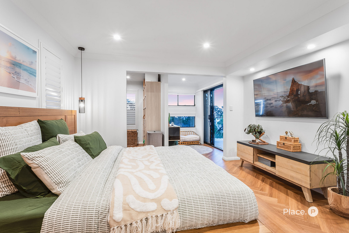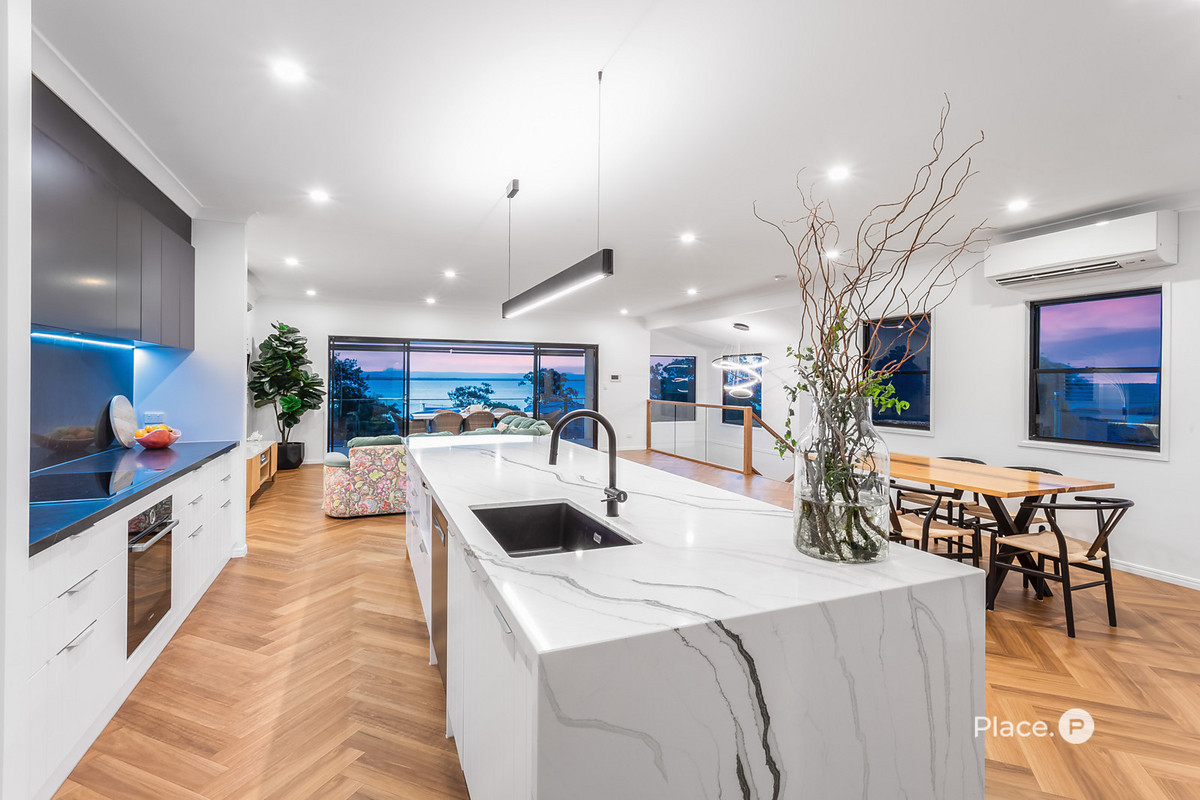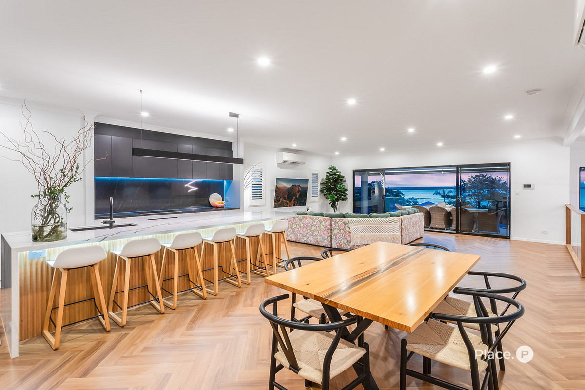 Positioned in one of Scarborough’s most sought-after pockets, this elevated and expansive residence sits on a generous 607m² block and enjoys sweeping views across the bay to the Glasshouse Mountains.