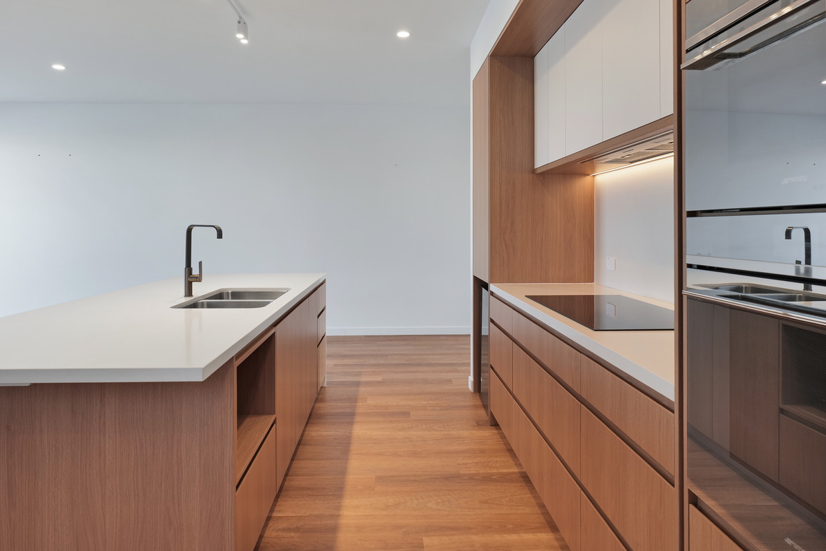 – Designer kitchen featuring large stone benchtops, dual Smeg electric ovens, Smeg cooktop, wine fridge & walk-in butler’s pantry with Bosch integrated dishwasher and ample storage.