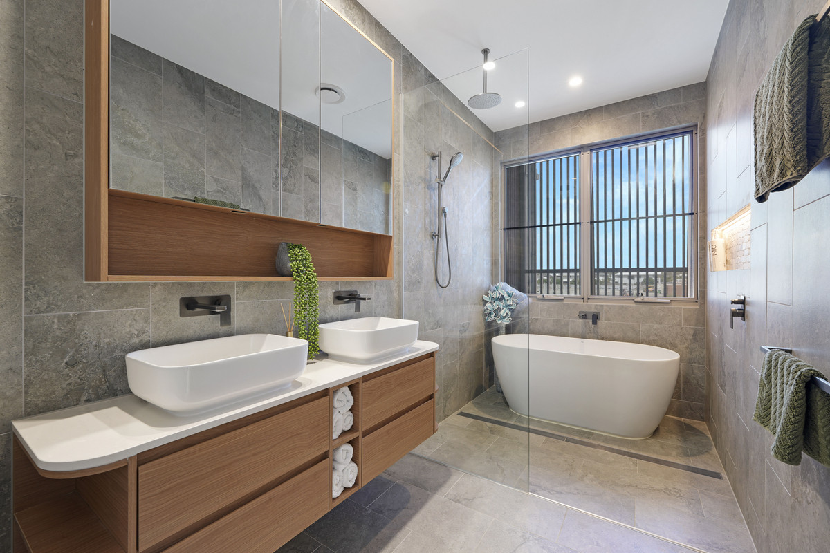 * Master suite with walk-in robe, balcony with bifold shutters, and luxury ensuite with deep bath and dual vanities