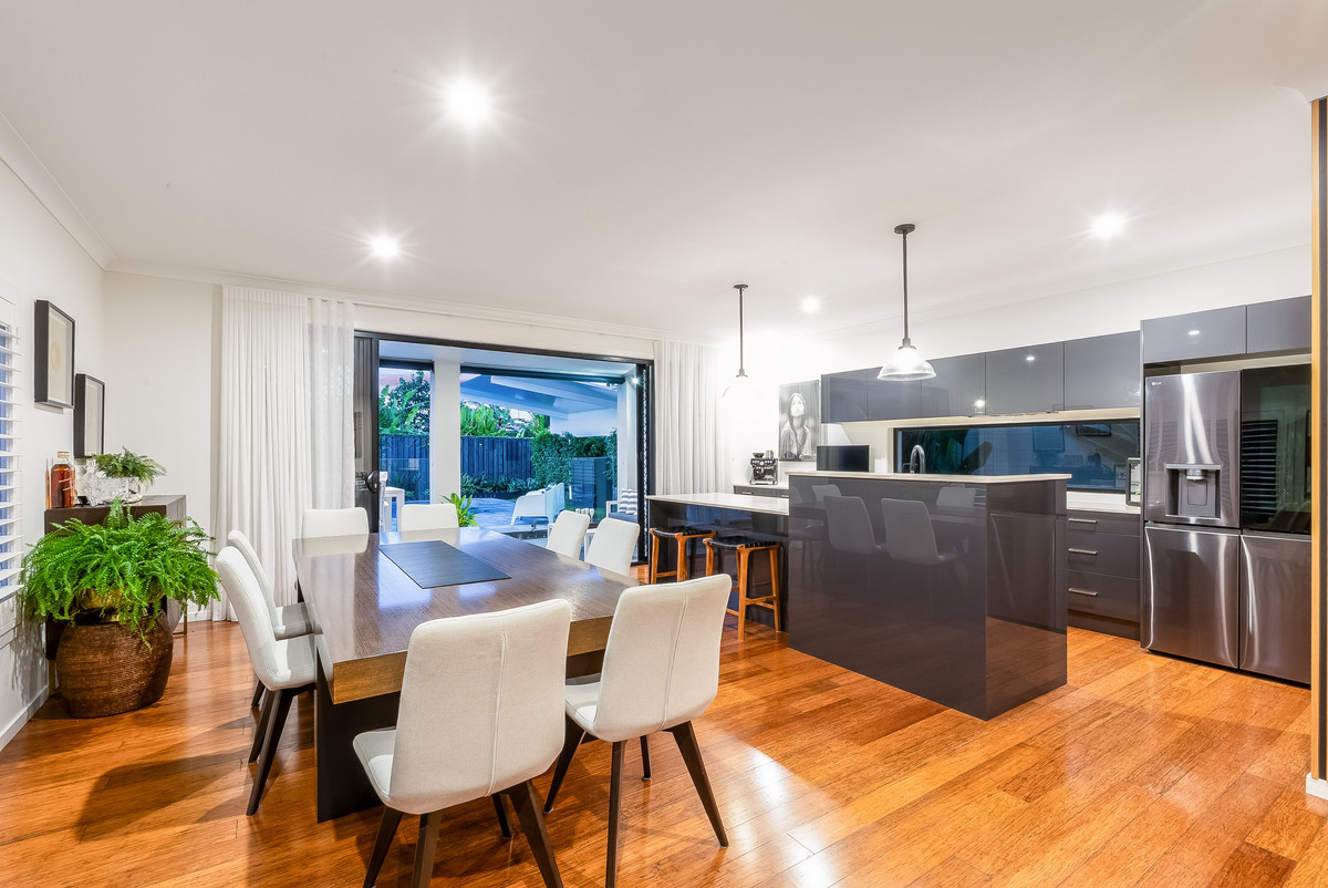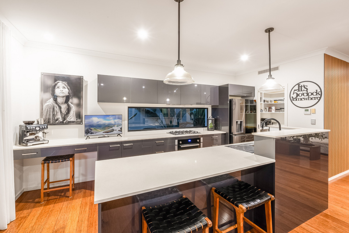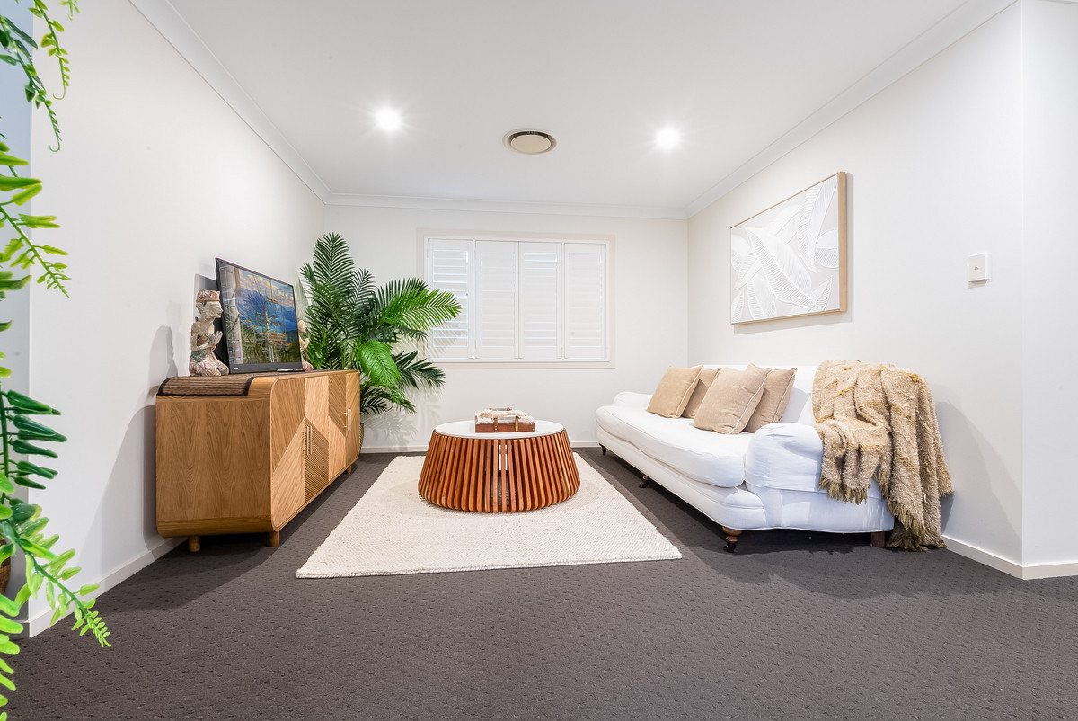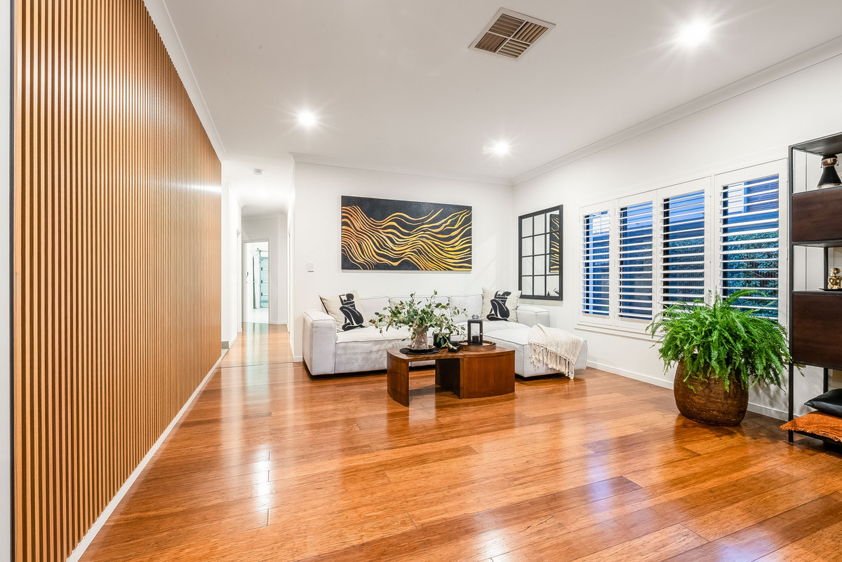 From the moment you walk in, you’ll be welcomed by a spacious open-plan layout designed for both entertaining and relaxed everyday living. The stylish kitchen is a standout, boasting quality appliances, stone benchtops, a breakfast bar, butler’s pantry, and abundant storage, perfect for home chefs and entertainers alike. Flowing seamlessly into the dining and main living area, soaring ceilings and large windows flood the space with natural light, creating a bright and airy atmosphere.